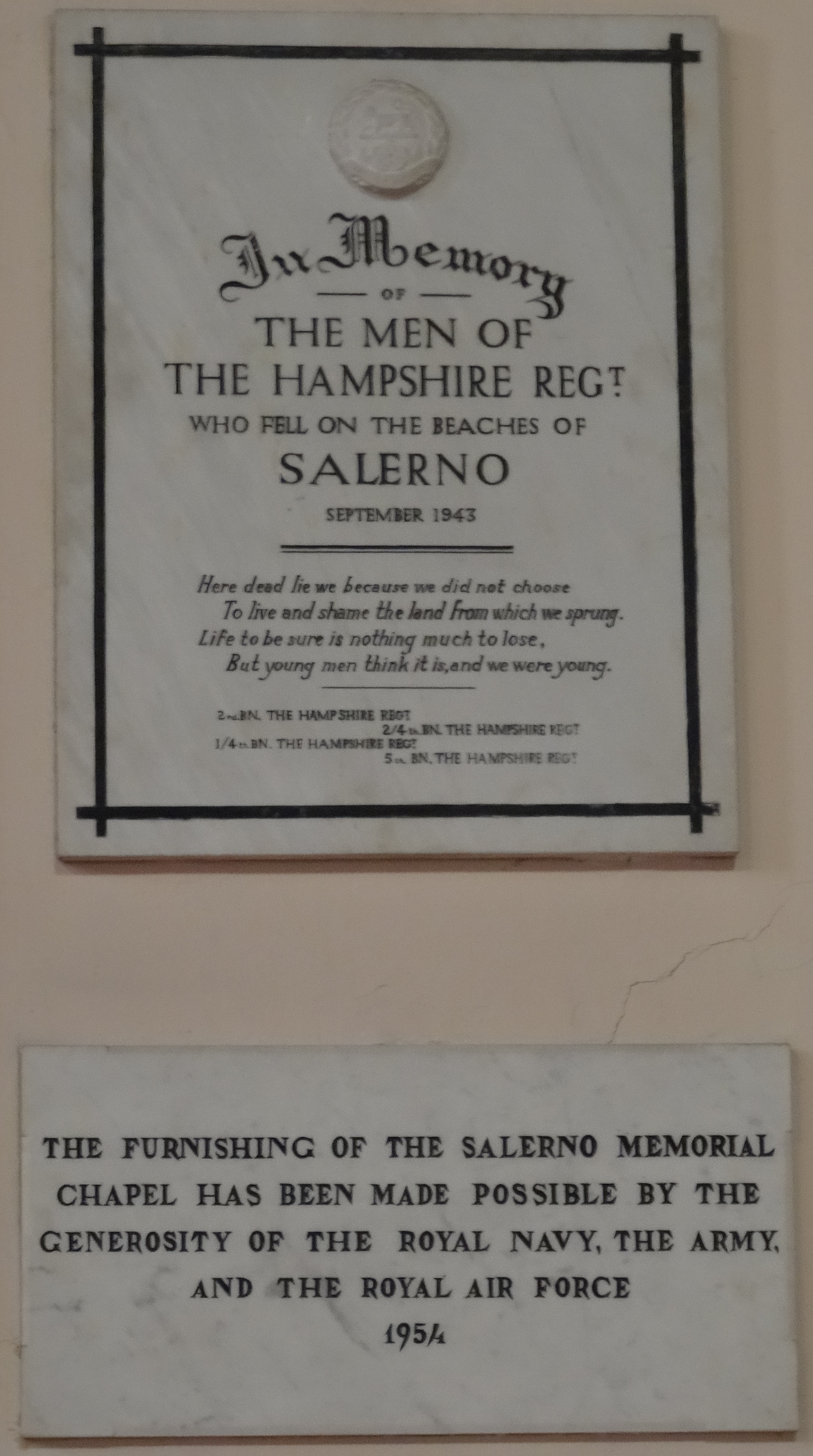 DSC01457 Published December 21, 2014 at 2744 × 4912 in Carols in a church that has seen it all ← Previous Next → This plaque is inside the church above a book listing the names of those who died at Salerno