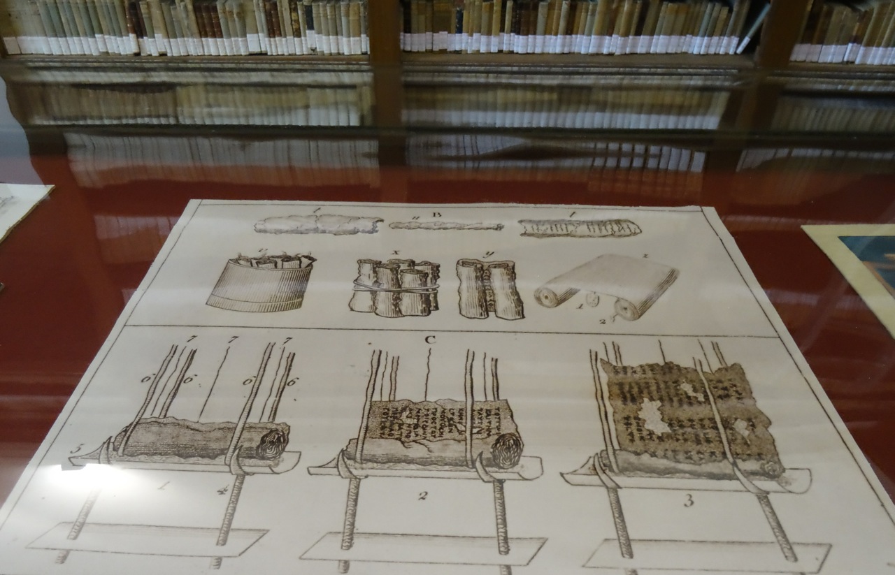 Details on papyrus scrolls Published February 16, 2015 at 1280 × 823 in Burned, buried and brought back to life ← Previous Next → Display poster showing how scrolls would have been stored originally and later the machine devised to delicately unravel charred remains Details on papyri scrolls