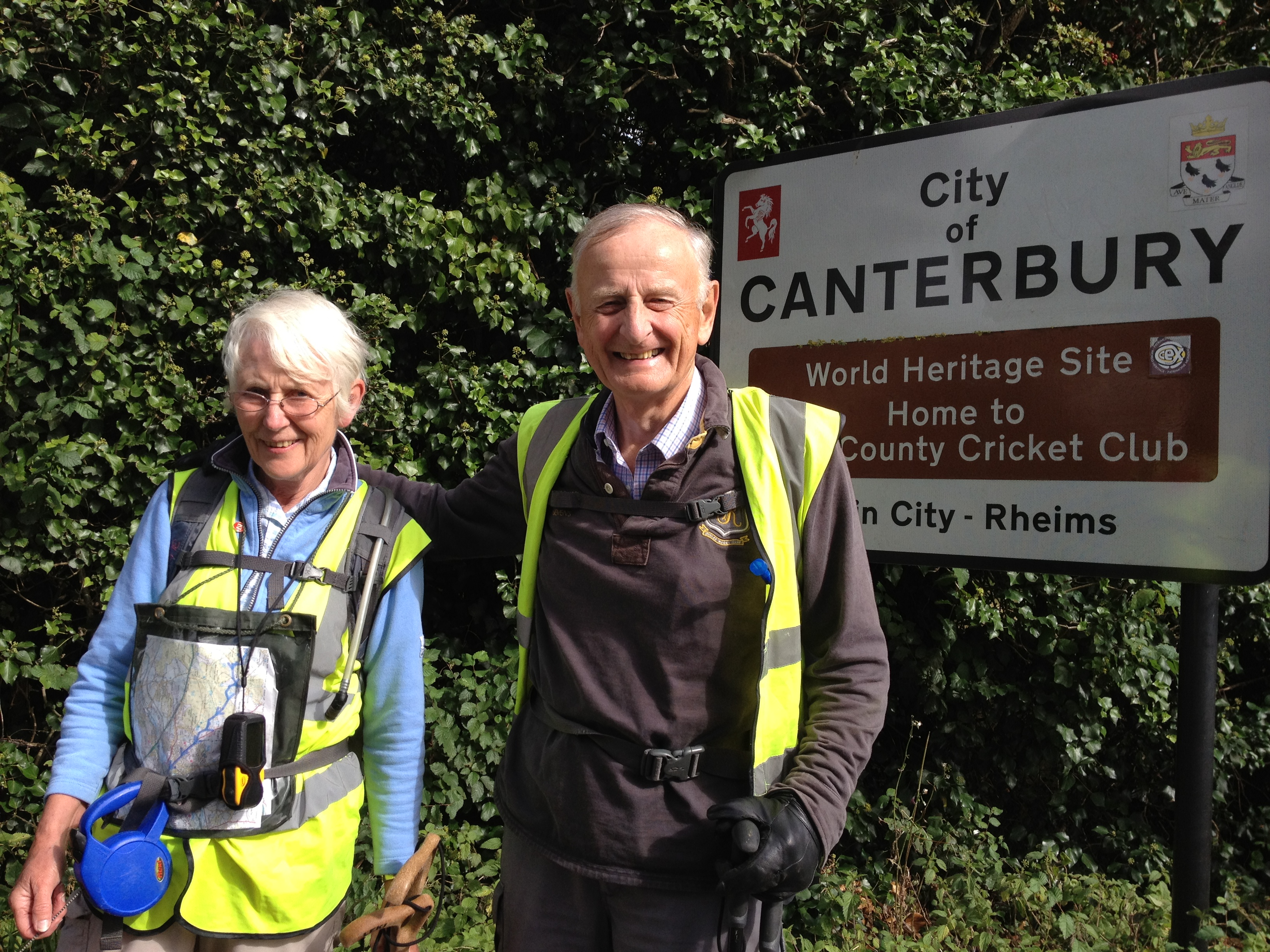 The trio, without Leah the ten-year-old Staffordshire bull terrier who had cut her paw at the top of the last rise, completed the final downhill stretch towards Canterbury Cathedral at around 3pm on Friday 28th September 2012.