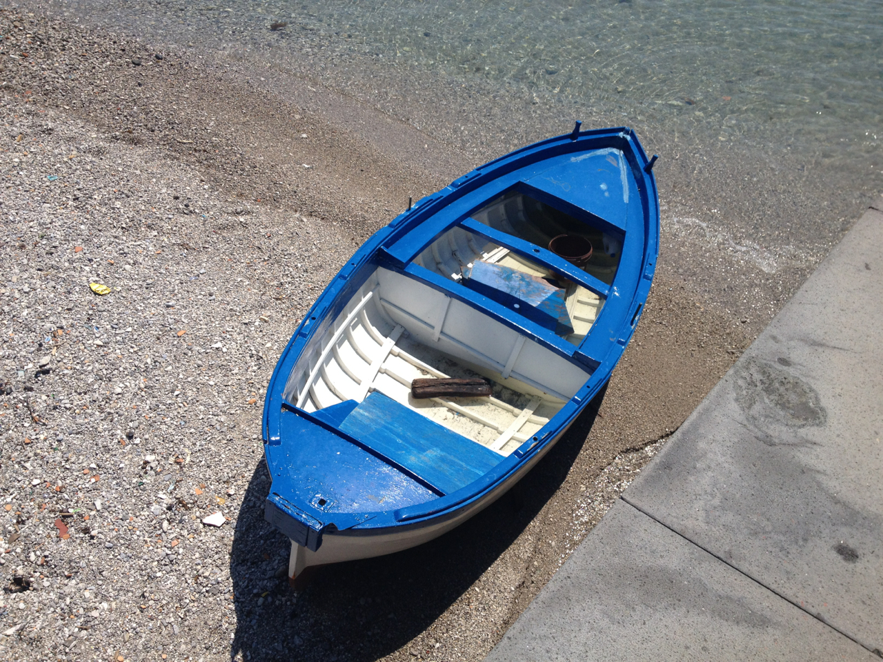 It’s mid-week and warm.  We’re in a fishing village, between a sea-blue sky and its beach below, with hardly a tourist in sight.