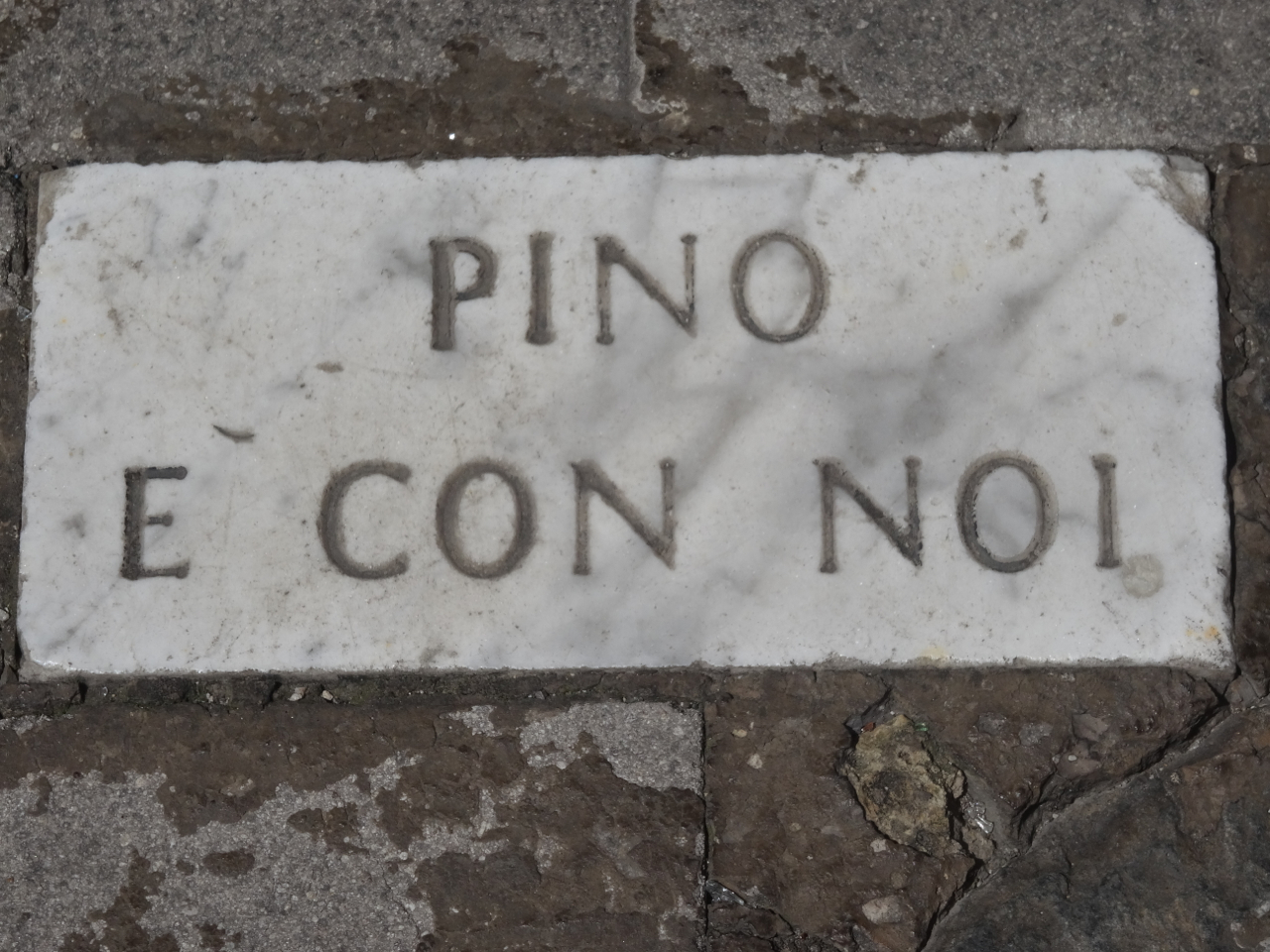 “Pino is with us” – one of the pavement stones in Naples, Italy that carry the name of Pino Daniele. This one is along the seafront.