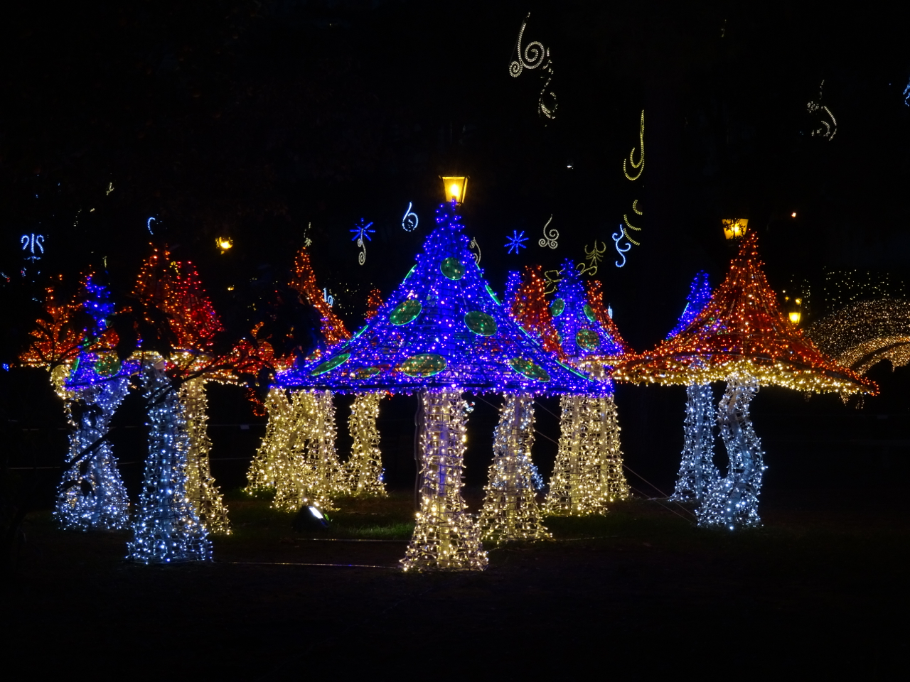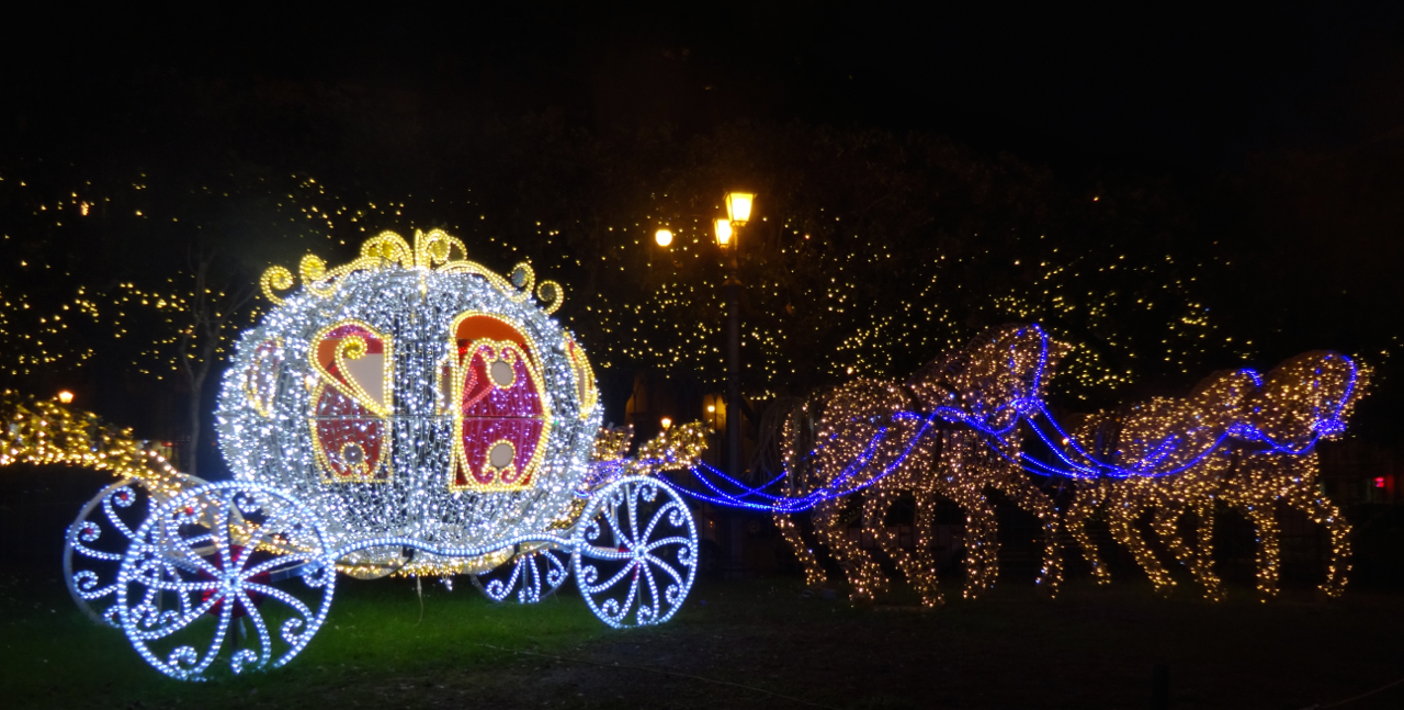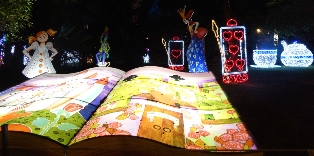 This park has been turned into an enchanted garden.  It’s full with the celebrities from children’s stories – Alice in Wonderland, Captain Hook, Pinocchio and Cinderella.  There are scenes from tea parties to pirate ships, with glittering animals in between – a whale, a crocodile and a life-size coach and horses.