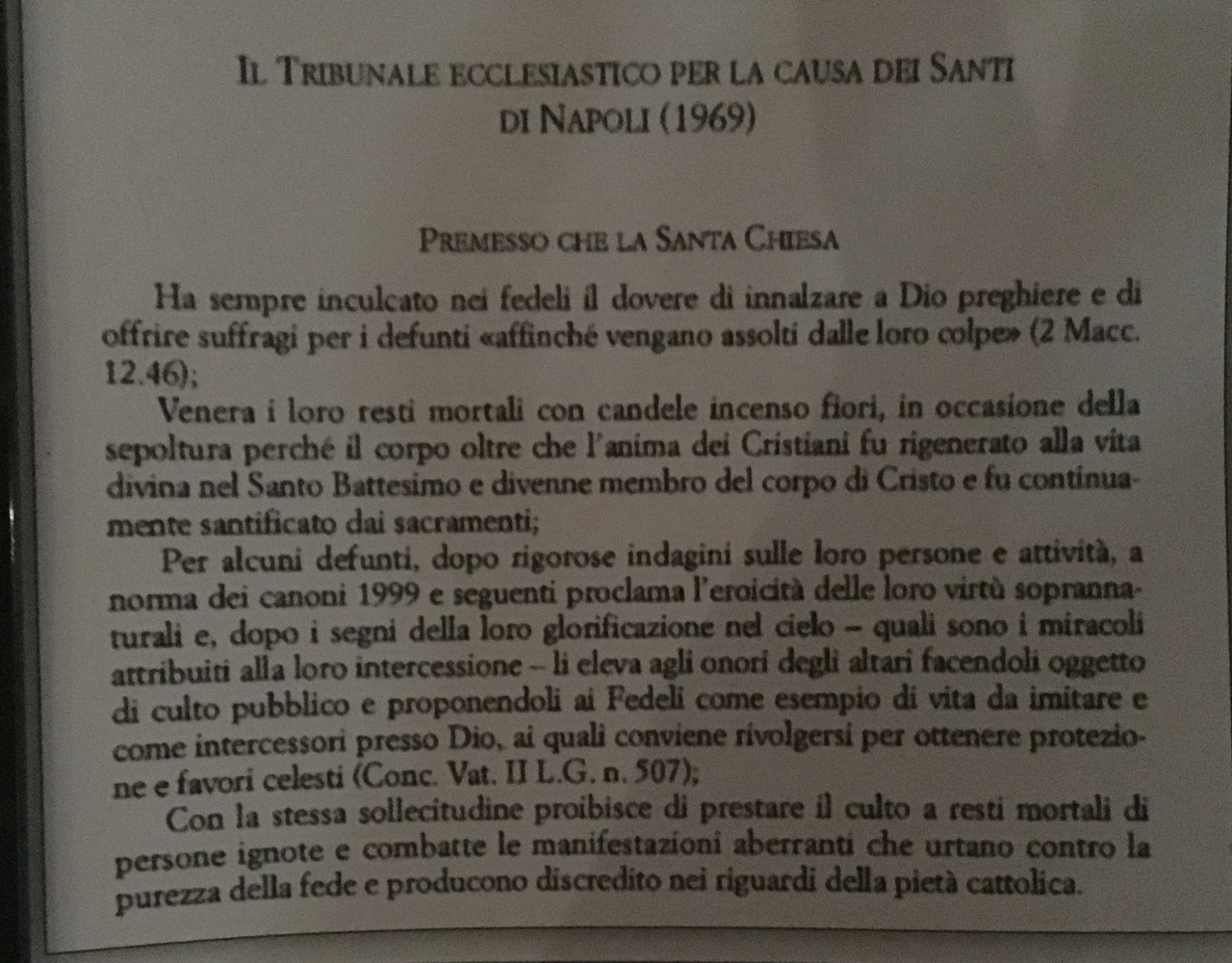 The Catholic Church’s grounds for closing the cemetery in 1969 Published July 6, 2016 at 1280 × 1000 in Naples, Italy: a visit to Rione Sanità – skulls, scars, Totò and a grand palazzo ← Previous Next → The Catholic Church’s grounds for closing the cemetery in 1969 The Catholic Church’s grounds for closing the cemetery in 1969