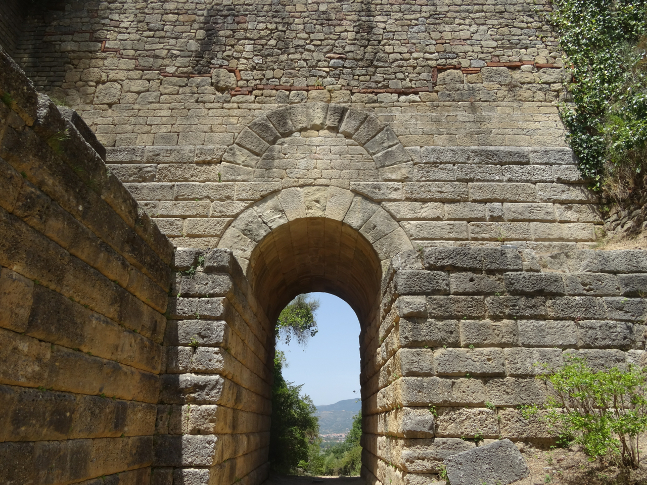The arch sits in a gorge at the top of the hill exactly as it has done since the second half of the fourth century BC. The only difference today is that the debris that buried it for so many of those centuries has now been removed.