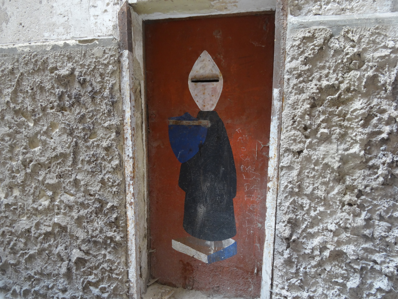We pass a dark-doored bar with a few customers. Amongst them, large on a plastic chair, is our car-minder. We exchange nods, surprised, and move on … perhaps our backs are included in the price.