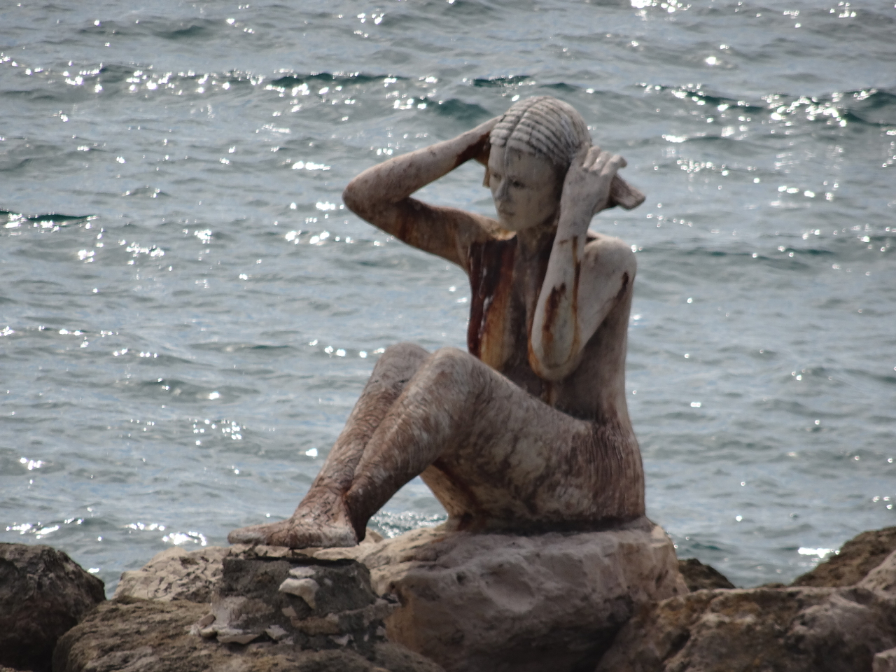 The wide road above the bay gives us our first sight of the sirens perched on the rocks in the sea below.
