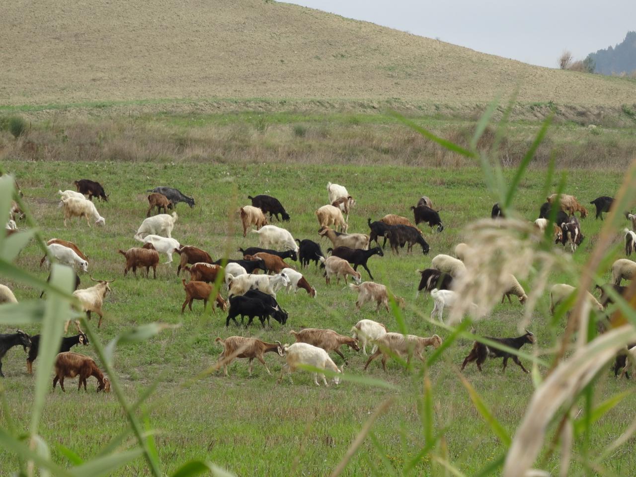 In the fields to either side of the road there are goats but no cattle, and just one glimpse of a handsome black horse.  The grazing looks sparse and the soil un-giving.