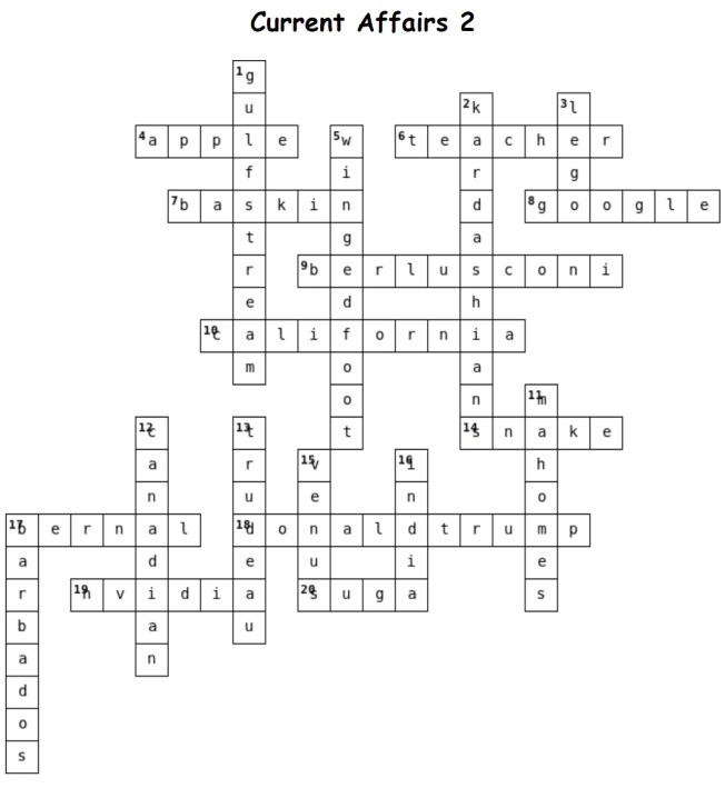 Crossword answers (2) 16.09.2020