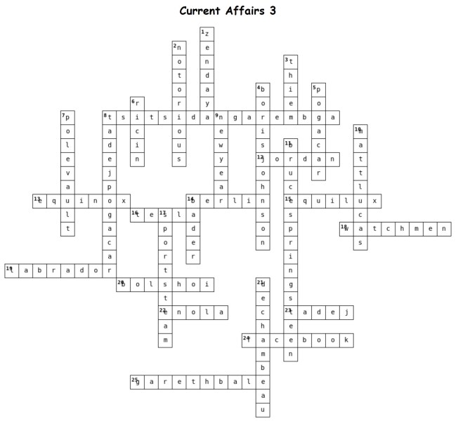 Time for the answers to Crossword 3. I always find these more fun than the questions, because when I read through them I can convince myself that I would have known them anyway. To save you having to flick back, the answers are written out beside the questions. You’ll see them just beneath the puzzle below.