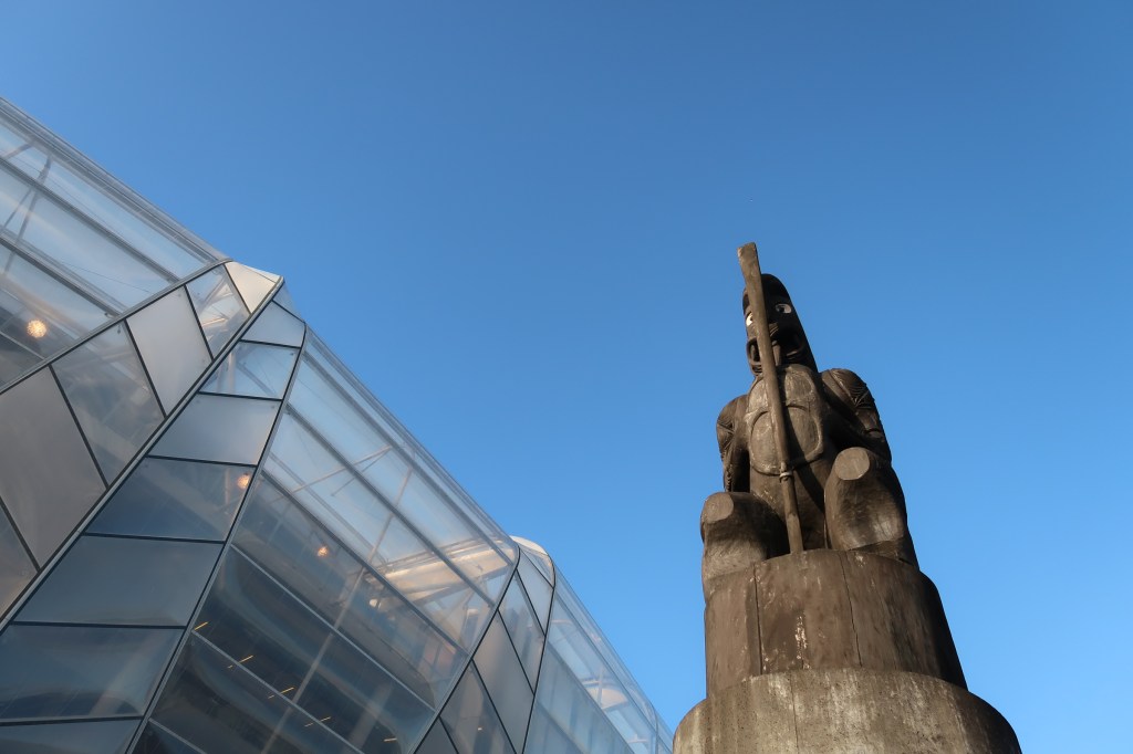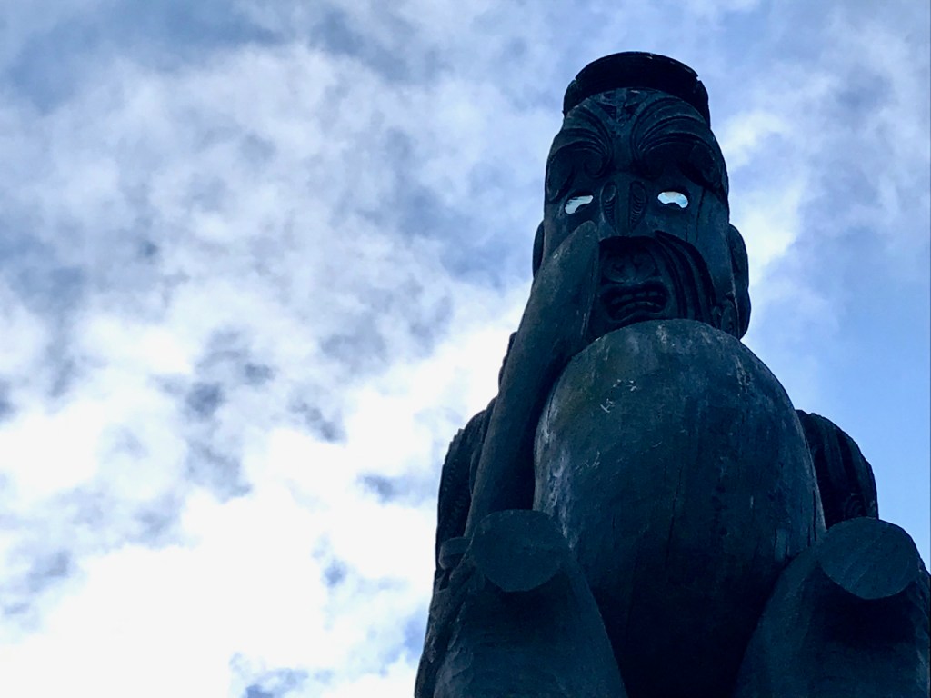 We arrived early, and walked around the outside of the stadium. At various points, four, large wooden carvings (tekoteko) stood guard, each glowering down from a three metre high plinth.