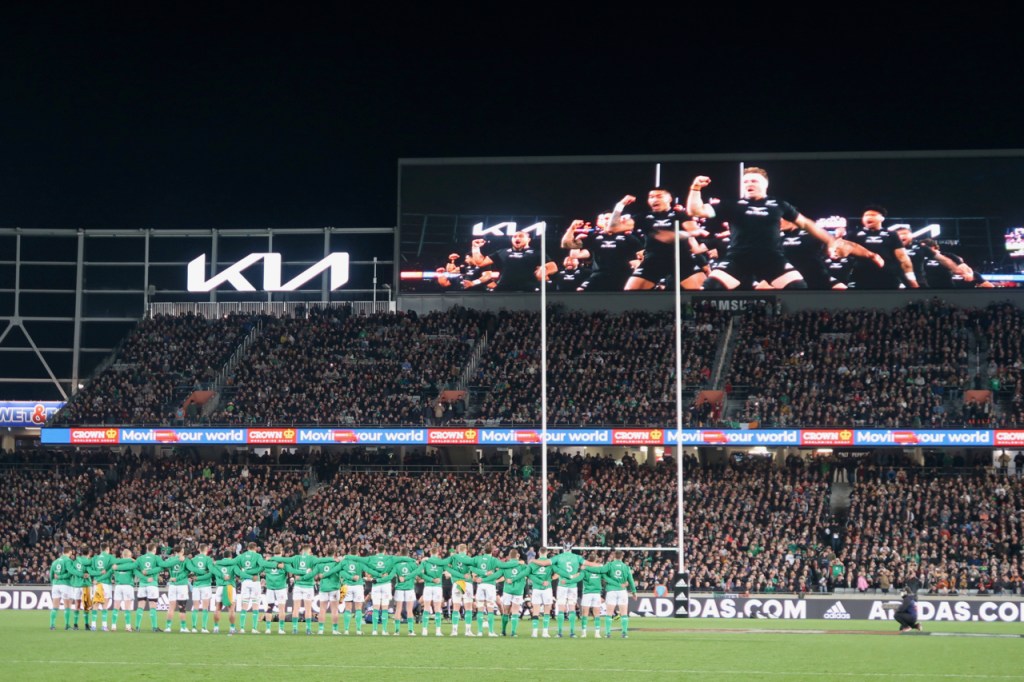 By the time it came to face the Haka, the Irish were lined up with their backs to us. Suspended above them, magnified many times, were the All Blacks, boiling down their challenge.