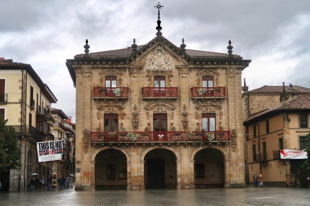 We visited Oñati on a wet weekend. It was a place to stop en route to the monastery just beyond the town. Hoping for lunch we parked the car, and went off in search of the main square.