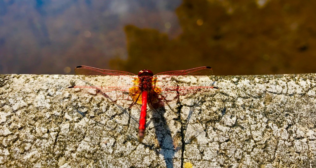 Drinks secure they make their way to a group seated at a high table on the edge of the verandah. The two men in the group stand as they approach.