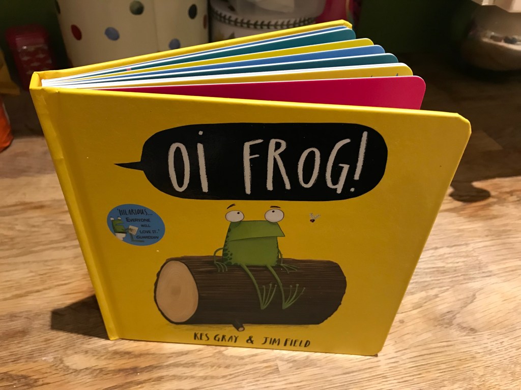 It was early evening. A mother and her two children had come into the shop behind me. The little girl was intent on a finding a particular book to read, while her brother, not much younger, was only interested in the sticker books. Unluckily for him, his mother was not prepared to buy them unless he read them. As I wandered around the shelves the situation between mother and son deteriorated. Watching them exit empty-handed I wondered if Oi Frog! might have bridged the divide.