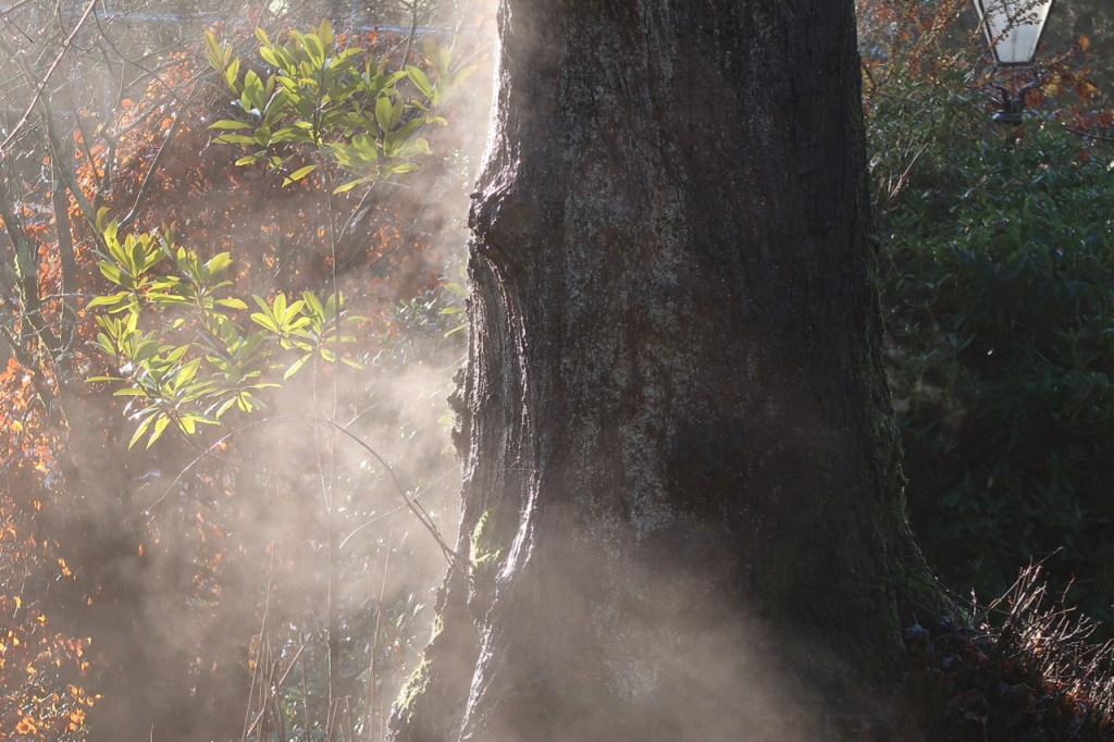 On a bright sunny morning, after a long period of wet and cold, I saw this old lime tree steaming in the sun. Or was it breathing? I’ve searched the internet to find the answer but I am still not sure what it was doing.