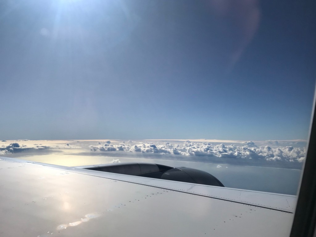 Thirty hours of travel were about to end. London was now the dot out of sight, and there below was the upside down, lumpy exclamation mark that I’d peered at so often on our map on the kitchen wall.