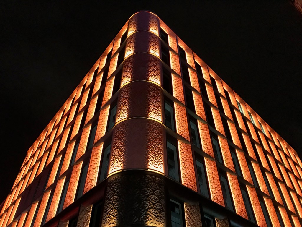 I cut through the back routes to get to my destination – the huge Foyles bookshop open until 9pm. As I stepped out of a smaller road to cross the main road, I looked up to see the building beside Foyle’s shining in front of me. Last time I had seen it covered in scaffolding, now there it was gleaming in brazen golds, the only blemishes being the few railings that still clung to its hem like safety pins.