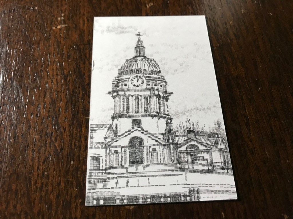 All was going reasonably well until I looked out of the window and saw someone crouched over a typewriter, and a long ream of paper. I tried to make sense of what I was seeing but could not. The pavements were still wet and the sky grey and cold, but the artist continued, head bowed and focused intently on the building in front of them, their fingers hitting the keyboard and the paper rolling out of the typewriter towards the floor.