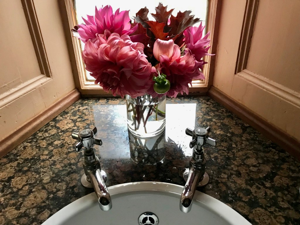 Take these flowers, seen when the rain poured over Scotland. There were only a few of them in the vase, but there they were on a window ledge, unperturbed, taking a bow in all their finery. Perhaps that’s the way to do it.