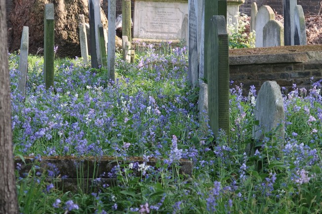It feels strange to be so still while around us life bursts out in places we never noticed before – even in London. The photographs in this piece were taken yesterday in a peaceful spot called Bunhill Fields Burial Ground, which is the “final resting place for an estimated 120,000 bodies” amongst them William Blake, Daniel Defoe and John Bunyan.