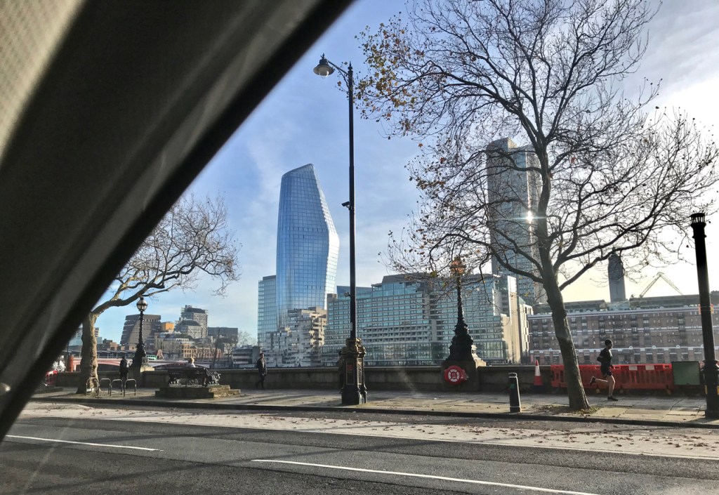 It was bright and sunny and cold today as I drove through London. Thinking back over the drive, two pauses in particular have stayed with me. Both were at the ends of bridges. The first was at the pedestrian crossing, by the roundabout at the end of Lambeth Bridge.