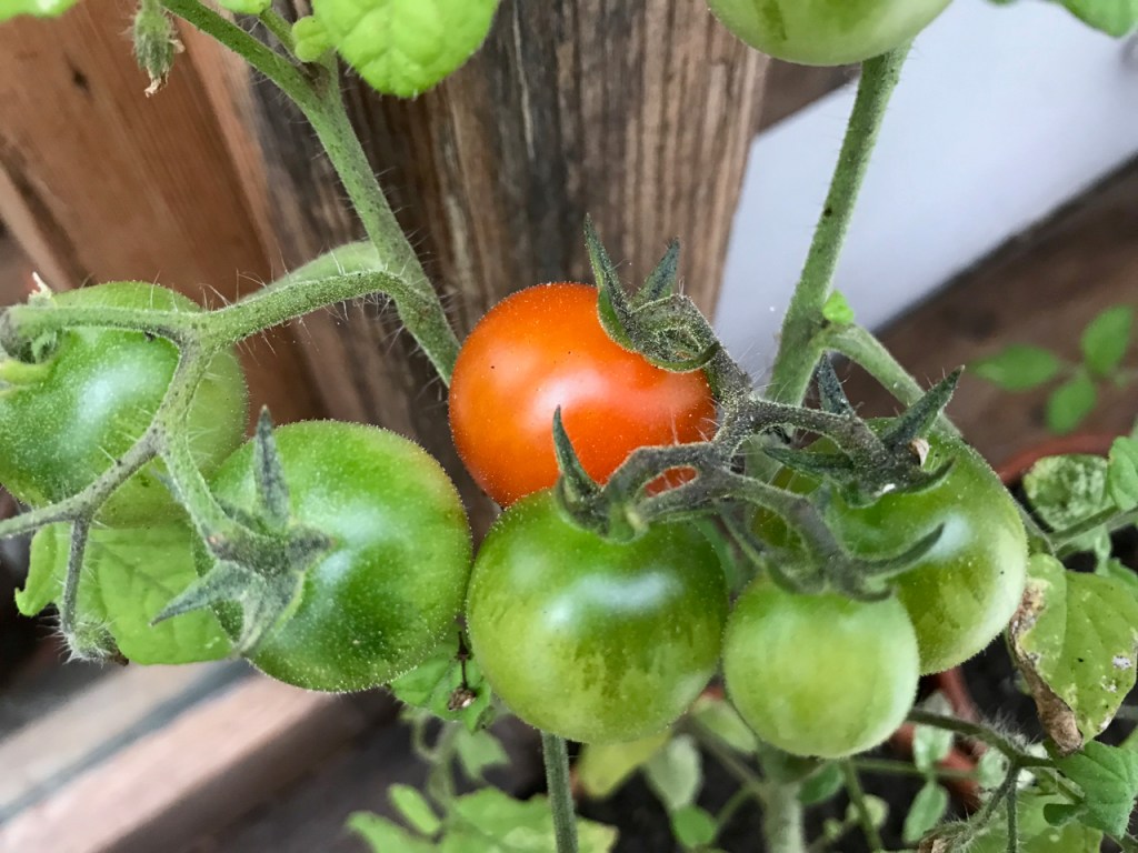 It seems to me that it’s loving the indoor life, one of its ‘love apples’ going cheerful as Aperol almost instantly. The others still look a bit shy, but I’m hopeful.